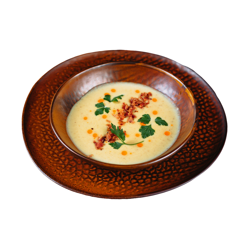 (351г) сыр сливочный, сливки,бульон куриный, картофель, лук, бекон, ньокки, зелень
