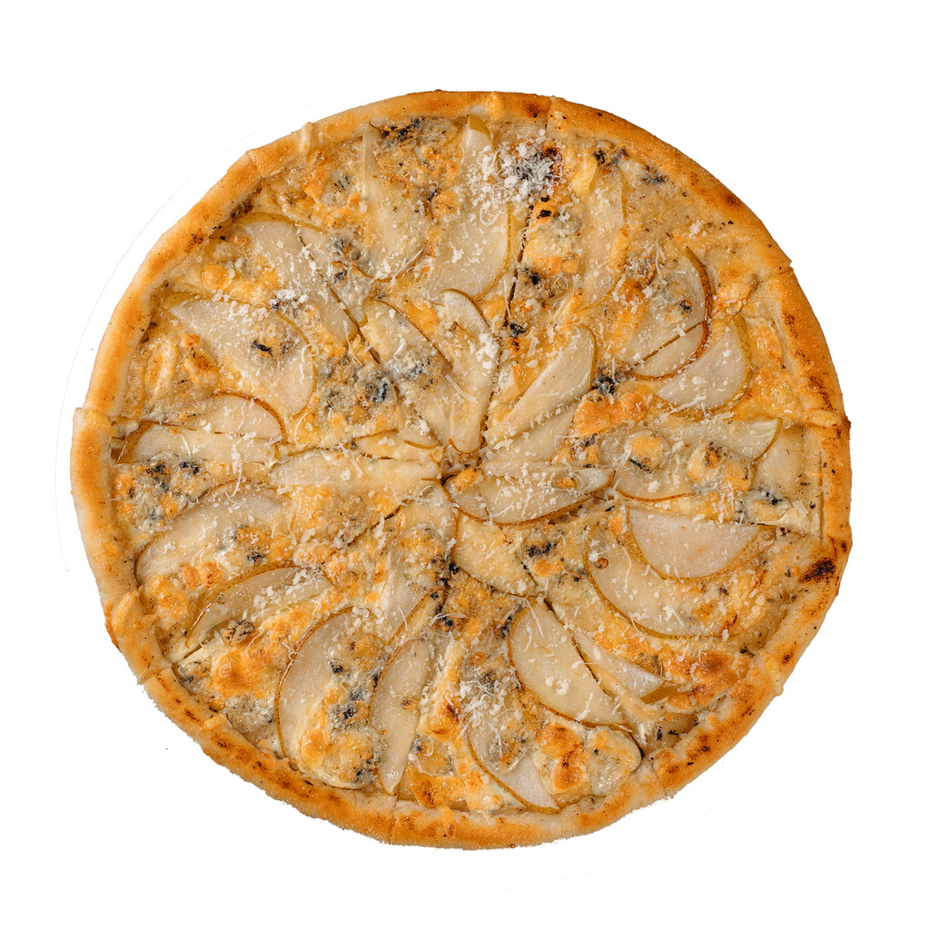 (525) Тесто, соус Сливочный, микс сыров (моцарелла и гауда), груша, сыр дор блю, пармезан
