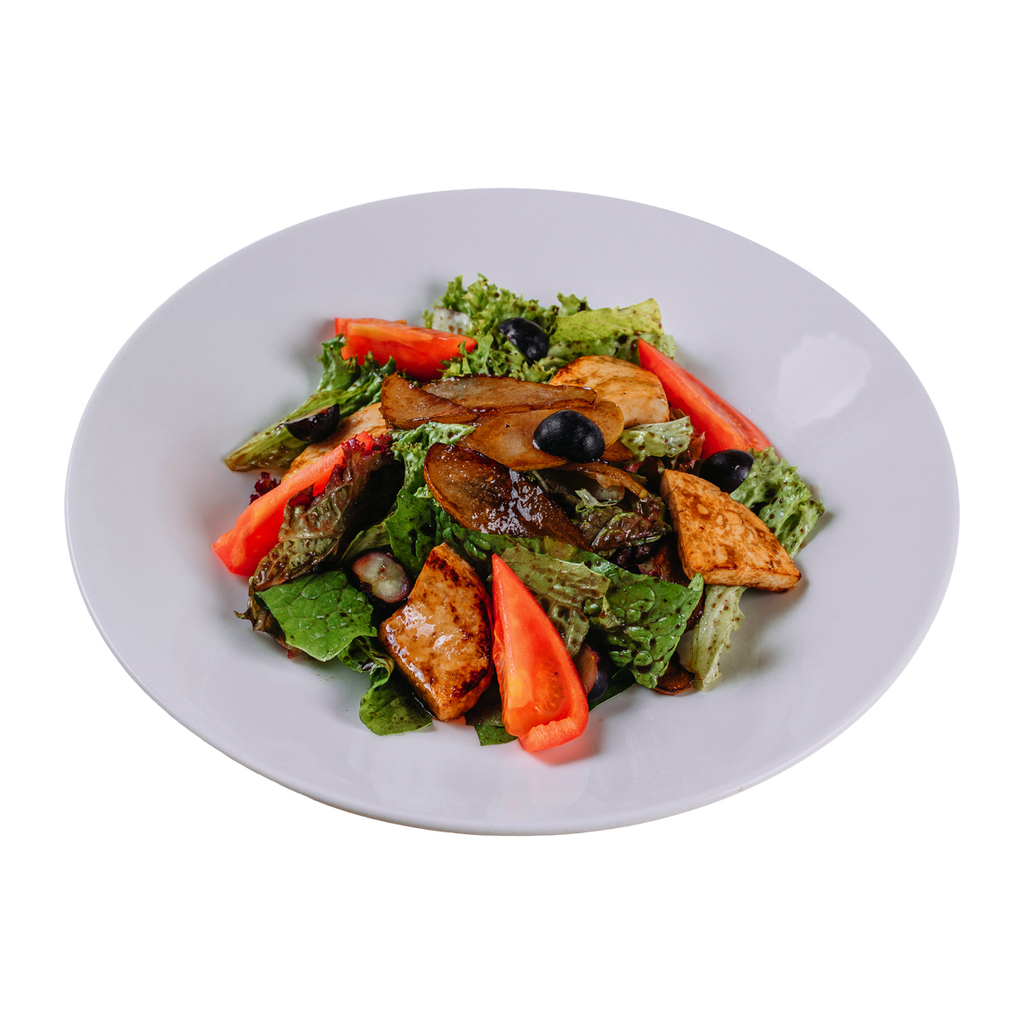 (200) Микс салата халуми, груша, помидор, масло оливковое, бальзамик Грушевый, голубика