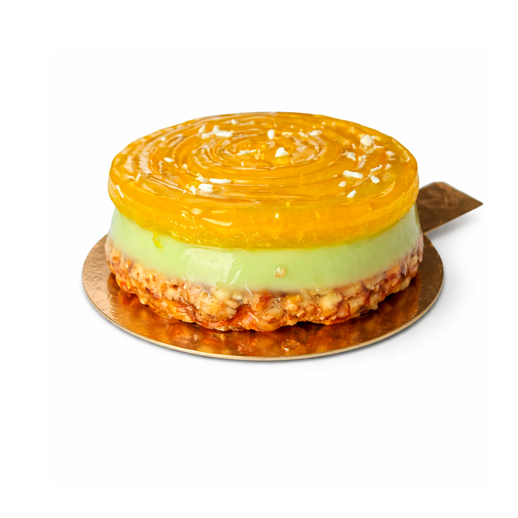 (86) Мусс Матча с кокосовыми сливками, основа миндальная,кули мандарин, нейтральный гель, кокосовая стужка